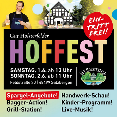 Heute (01.06.) und morgen (02.06.) lädt das Gut Holsterfeld zum Hoffest ein. Wir sind am Sonntag ebenfalls mit einem Stand vor Ort und freuen uns auf viele Besucher!