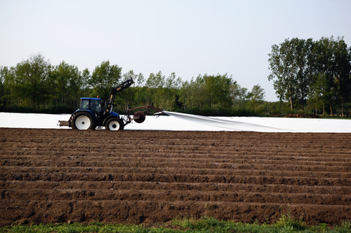 Die Ernte, das Spargelstechen, ist eine körperlich sehr mühsame Handarbeit, die viel Geschick und Erfahrung erfordert, daher setzen wir vermehrt Erntehilfen ein. Die Spargelspinne hilft unseren Mitarbeitern enorm. Sie hebt die Folie an und "schleppt" die Erntekisten. So schaffen unsere besten Mitarbeiter eine unglaubliche Tagesleistung von 250 - 300 kg."