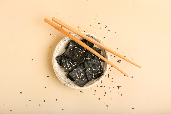 Nori-Blätter, traditionell in Japan und anderen asiatischen Ländern genutzt, stammen aus dem Meer. Sie werden aus verschiedenen Arten von Rotalgen gewonnen und haben eine lange Geschichte in der asiatischen Küche.