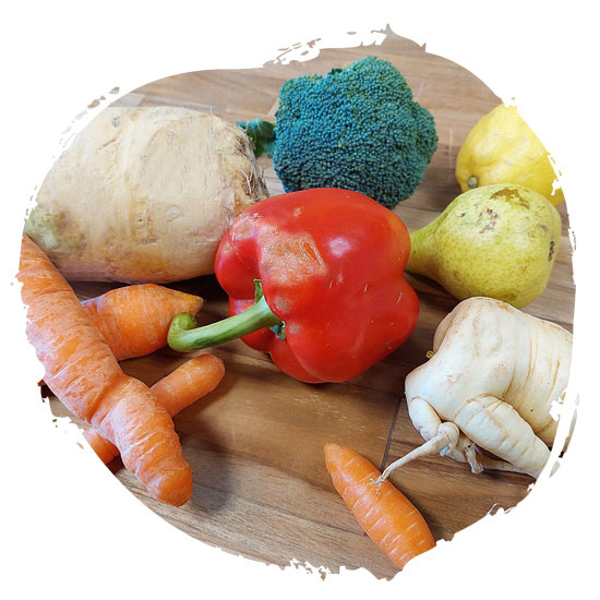 ...soll perfekt sein- die Optik nicht! Wir sind es gewohnt, in den Obst- und Gemüseabteilungen der Supermärkte nur noch optisch perfekte Einheitsware zu finden. Alles, was kleinste Mängel aufweist, wird rigoros entsorgt. Wir finden, dass eine solche Haltung weder ethisch vertretbar noch dem Wert unserer Lebensmittel angemessen ist. Gerade kleinere regionale Erzeuger bieten uns Waren an, die eine tolle Frische und geschmackliche Qualität, aber keine 100%-Optik haben. Als bestes Beispiel können einige historische Tomatensorten dienen. Keine dieser Sorten hätte eine Chance auf dem normierten Lebensmittelmarkt, aber jede dieser Tomaten ist ein ästhetisches und geschmackliches Erlebnis. Dieses Verständnis für einen erweiterten Qualitätsbegriff ist uns besonders wichtig.