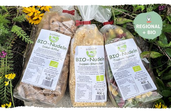Wieder da: Heuerhof-Nudeln Lange haben wir darauf gewartet – jetzt hat der Heuerhof Elbergen endlich wieder Nudeln aus seinen eigenen Demeter-Eiern hergestellt. Neben den beliebten „Dinkel Riffel“ gibt’s jetzt zwei Neuzugänge im Sortiment: bunte „Tricolore Spiralen“ und feine „Suppen-Sternchen“. Wie immer mit viel Handarbeit und Liebe zur Qualität gemacht. Jetzt im Shop entdecken!