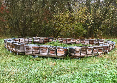 Im Grunde ist es so: ein Bienenvolk sammelt im Sommer Honig, um im Winter etwas zu Essen zu haben. Dann kommt der Mensch und nimmt den Bienen den Honig weg und gibt dem Bienenvolk Zucker als Winterfutter.