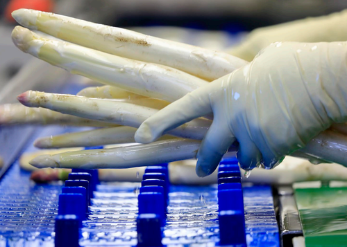 Spargel ist sehr empfindlich und schmeckt frisch am Besten. Daher muss er rasch vom Feld geholt, sofort schockgekühlt, gewaschen und sortiert werden. Wir unterscheiden in 13 Sortierungen. Ein einheitliches "Kisten-Bild" ist uns hierbei sehr wichtig.