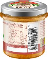 Tomaten* (37%), Sonnenblumenkerne*, Karotten* (10%), Sonnenblumenöl*, Rucola* (9%), Kirschtomaten* (7%), Kartoffelstärke*, Agavendicksaft*, Tomatenmark* (2%), Rote Bete-Saft aus Rote Bete-Saftkonzentrat* (2%), Zitronensaftkonzentrat*, Meersalz, Zwiebelpulver*, Verdickungsmittel: Johannisbrotkernmehl*, Chilipulver*.