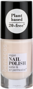 benecos 20-FREE Nagellacke - preiswert & vegan. Die pflanzenbasierte Formulierung besteht zu 80% aus Inhaltsstoffen natürlichen Ursprungs und verzichtet gleichzeitig auf mindestens 20 davon, die bisher als umstritten gelten. On top sind die Nail Polishes mit pflegendem Apfelsamenöl (Upcycling-Produkt) und Biotin angereichert sowie wasser- und luftdurchlässig.