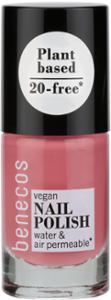 benecos 20-FREE Nagellacke - preiswert & vegan. Die pflanzenbasierte Formulierung besteht zu 80% aus Inhaltsstoffen natürlichen Ursprungs und verzichtet gleichzeitig auf mindestens 20 davon, die bisher als umstritten gelten. On top sind die Nail Polishes mit pflegendem Apfelsamenöl (Upcycling-Produkt) und Biotin angereichert sowie wasser- und luftdurchlässig.