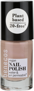 benecos 20-FREE Nagellacke - preiswert & vegan. Die pflanzenbasierte Formulierung besteht zu 80% aus Inhaltsstoffen natürlichen Ursprungs und verzichtet gleichzeitig auf mindestens 20 davon, die bisher als umstritten gelten. On top sind die Nail Polishes mit pflegendem Apfelsamenöl (Upcycling-Produkt) und Biotin angereichert sowie wasser- und luftdurchlässig.