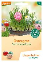 Traditionell zu Ostern macht sich dieses saftig-grüne Gras besonders schön als Dekoration für Osternester. Bei Zimmertemperatur braucht das Gras 7 - 10 Tage bis es eine schöne Wuchshöhe