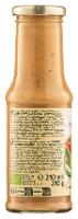 Wasser, Sonnenblumenöl*, Tomatenmark*, grüne Paprika*, Agavendicksaft*, Branntweinessig°*, Meersalz, Zwiebeln*, gelbe SENFSAAT*, Knoblauch*, Meerrettichzubereitung* (Meerrettich*, Wasser, Apfelessig*, Sonnenblumenöl*, Meersalz), Dill*, Zitronensaftkonzentrat*, Weißweinessig*, Sonnenblumenkernmehl*, Maisstärke*, Fababohnenprotein*, Verdickungsmittel: Guarkernmehl*| Energie | Fett | gesättigte Fettsäuren | Kohlenhydrate | Zucker | Eiweiss | Salz |