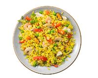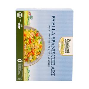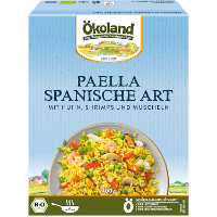 52% Reis* gegart (Wasser, Reis*, Speisesalz, Kurkuma*), Erbsen*, 7% Hühnerfleisch* gegart, Gemüsepaprika*, BUTTER*, 5% SHRIMPS** (SHRIMPS**, Speisesalz), 3,5% MUSCHELN** gegart, Zwiebeln*, Champignons*, Tomaten*, Meersalz, Roh-Rohrzucker*, Gewürze* (Knoblauch*, Pfeffer*, Chili*, Kurkuma*), Reismehl*, Kräuter* (Oregano*, Thymian*, Basilikum*), Gemüsepulver* (Zwiebeln*, Pastinaken*, Karotten*), Olivenöl*.| Energie | Fett | gesättigte Fettsäuren | Kohlenhydrate | Zucker | Ballaststoffe | Eiweiss | Salz |