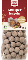 Leckere Dinkel-Knusperkugeln, umhüllt von feinster Vollmilchschokolade, bestäubt und veredelt mit einer Mischung aus Zimt und anderen weihnachtlichen Gewürzen.