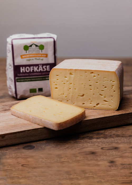 Der Backensholzer Hofkäse ist ein pikant aromatischer halbfester Schnittkäse mit einer buttrigen Note. Ideal für’s Brot.